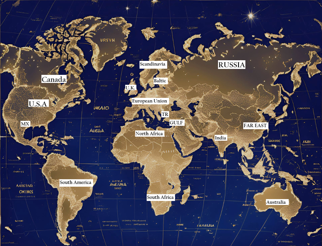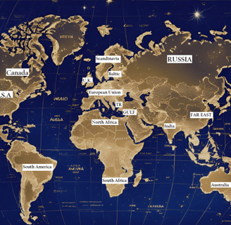 Discover key job opportunities across Europe, Africa, and the Americas through our interactive, metallic world map, featuring shimmering stars and informative displays.